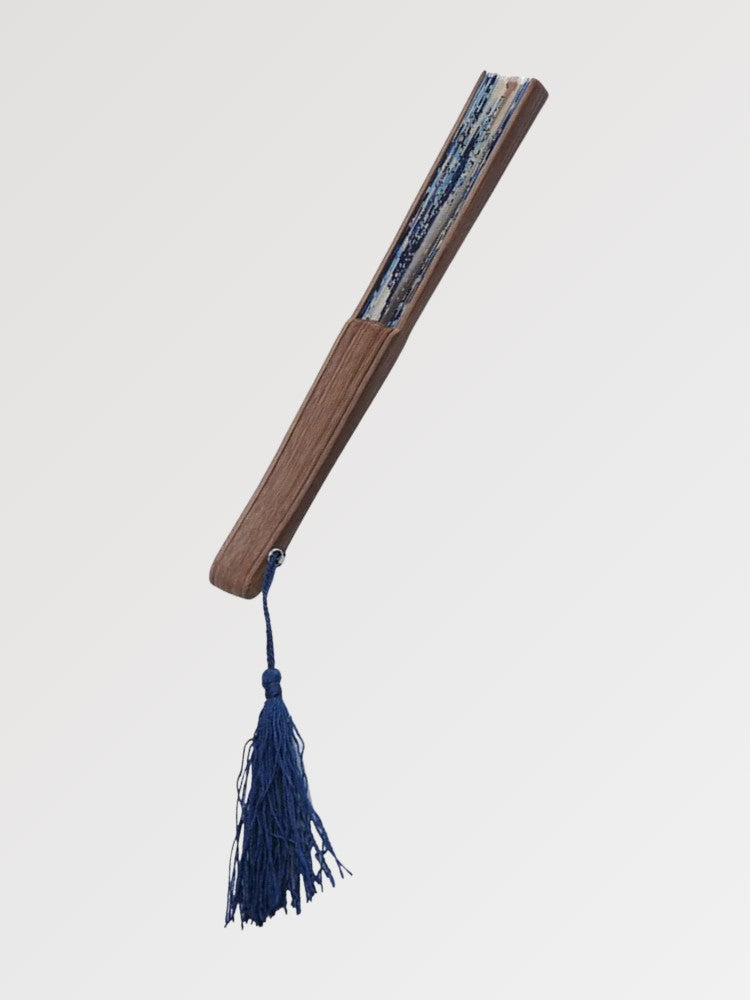 Japanese fan printed with the Kanagawa wave in honor of Hokusai