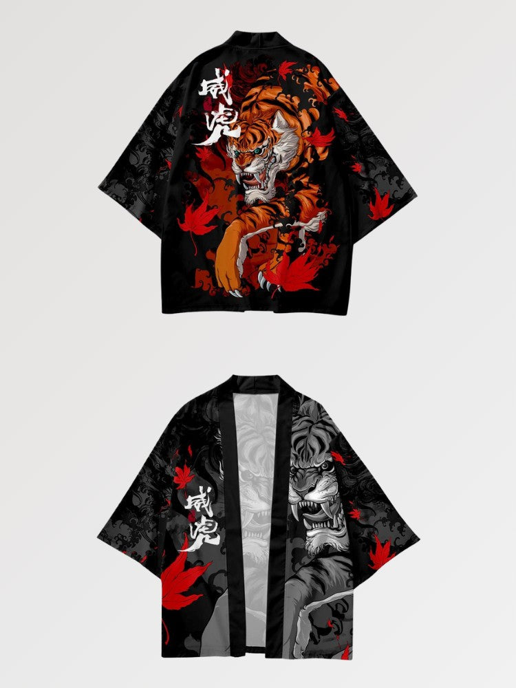 Haori ideal for a cosplay thanks to its tiger pattern and its japanese writings
