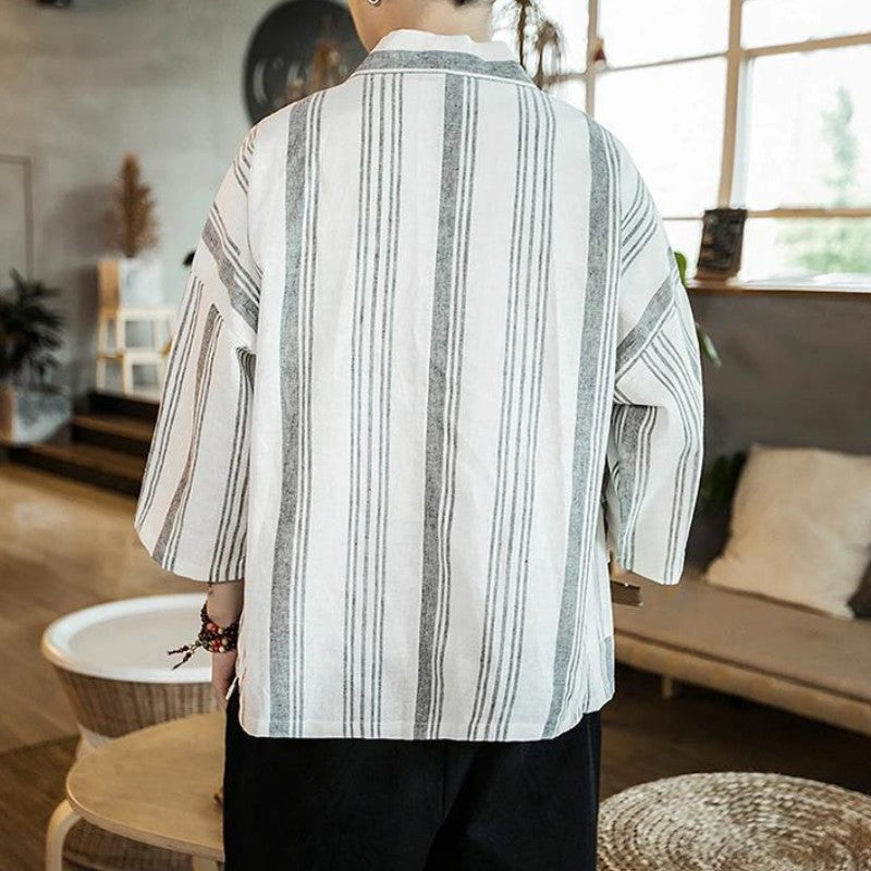 The striped kimono cardigan for men with linear pattern
