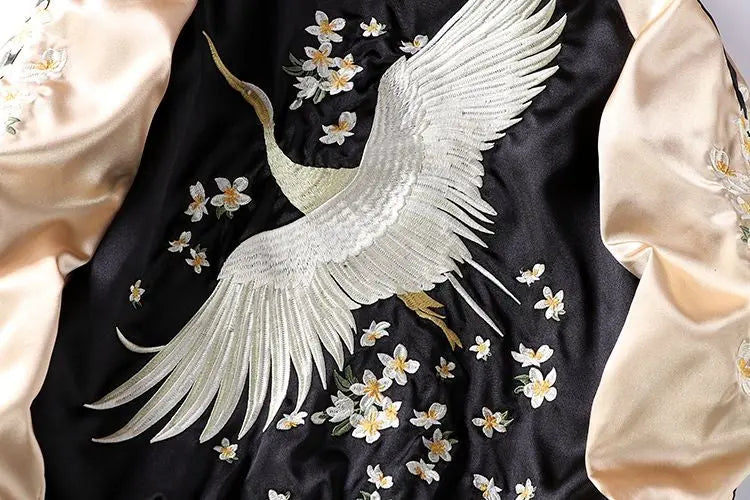 Treat yourself to this beautiful sukajan crane embroidered with a Japanese crowned crane