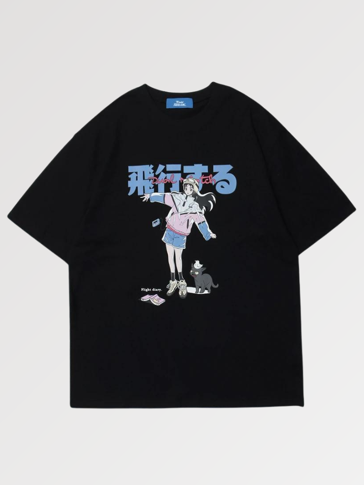 This Japanese t-shirt for girls is an essential piece of the Japanese look while keeping a real streetwear side. Its soft and thick cotton will make it your favorite model when you have to choose a top for a party or an afternoon with friends. Choose your favorite color among black and white to highlight the cute print in the center of the model and the butterfly cut in the center of the model.