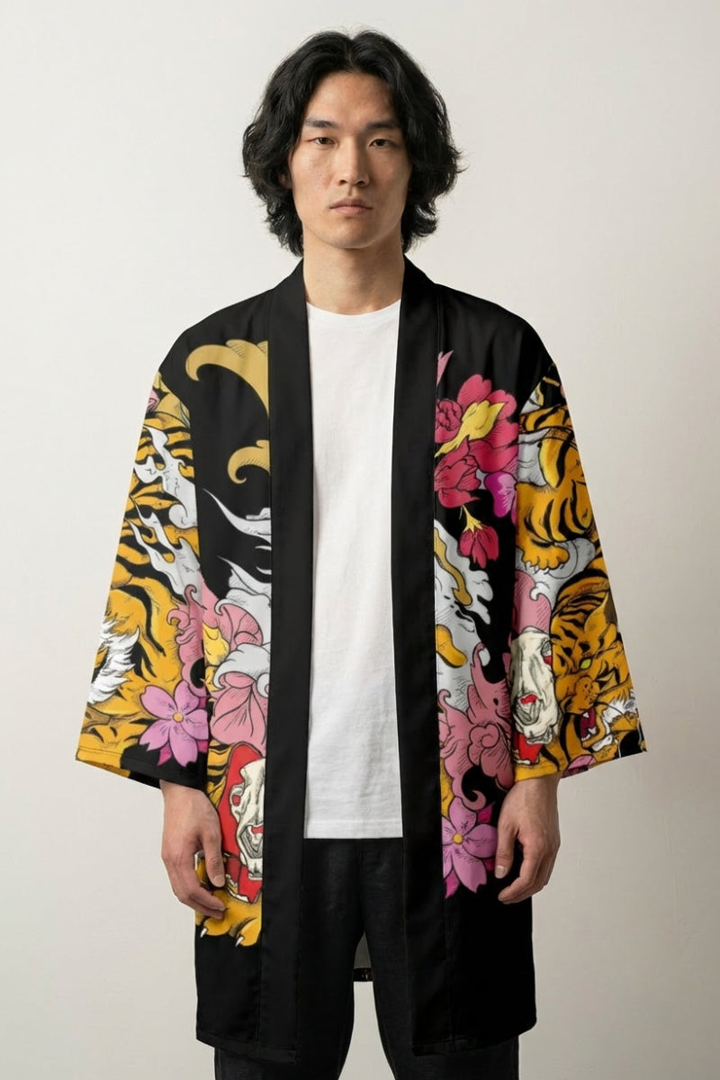 Japanese Happi Coat 'Tora Sakura' – Tiger & Blossom Kimono Jacket