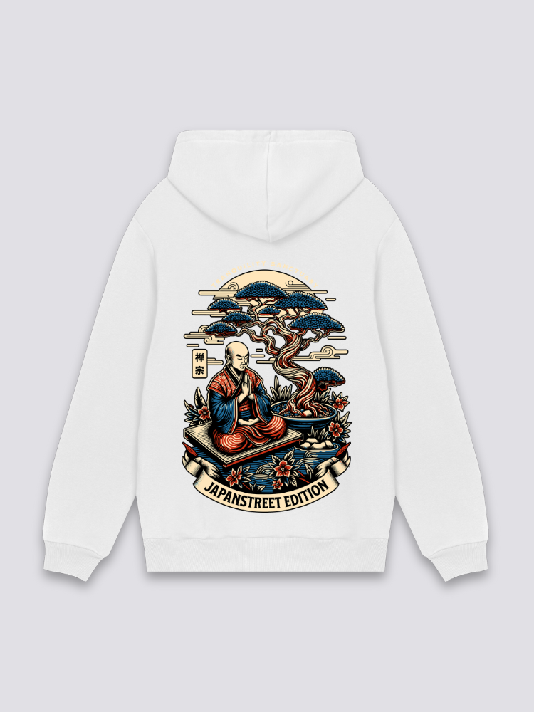Escape into serenity with this Hoodie with Japanese Print of a monk meditating under a tree