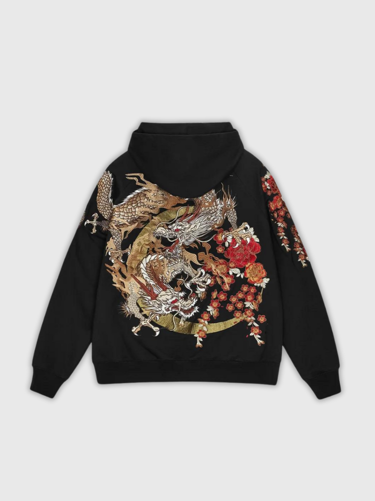 You will find on this Japanese blossom hoodie a symbol of peace and several dragons on Sakura