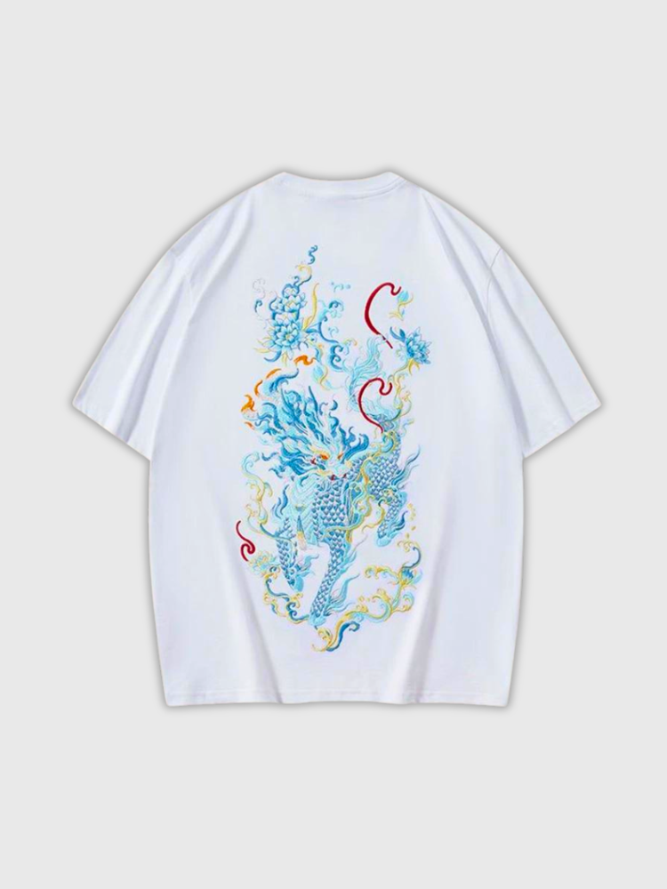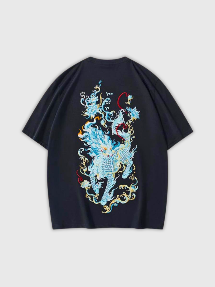 The perfect t-shirt for any fan of the underwater world! This 100% cotton top features an embroidered of kanji letters at the bottom, representing strength and courage. The soft fabric will keep you comfortable throughout your day with its regular fit and advanced design.