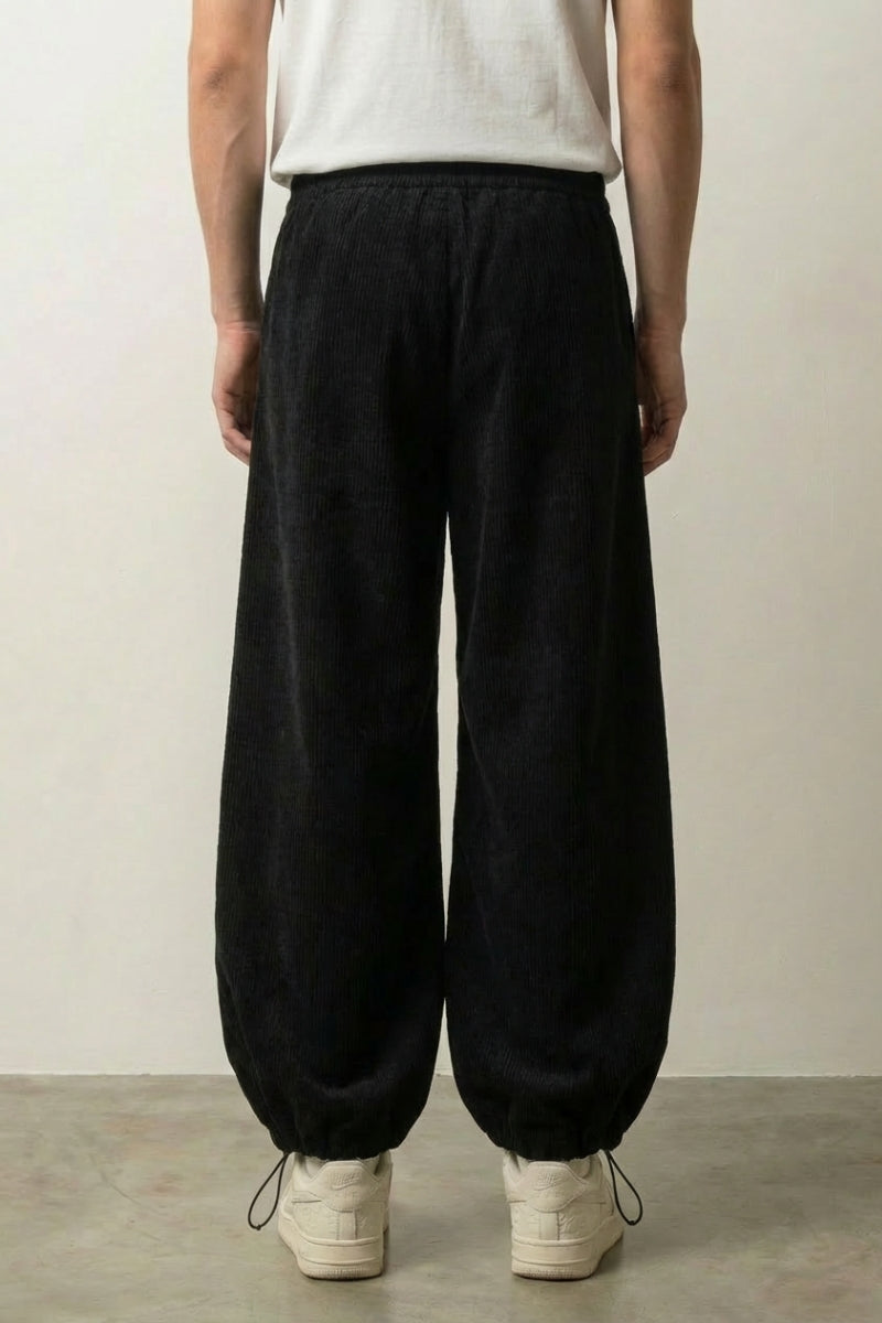 Crafted from a durable cotton and polyester blend, these pants are suitable for all seasons. The elastic waistband provides a flexible fit, while the pleated front and sash details add character to the design. Whether styled casually or as part of a streetwear outfit, they adapt effortlessly to any look.