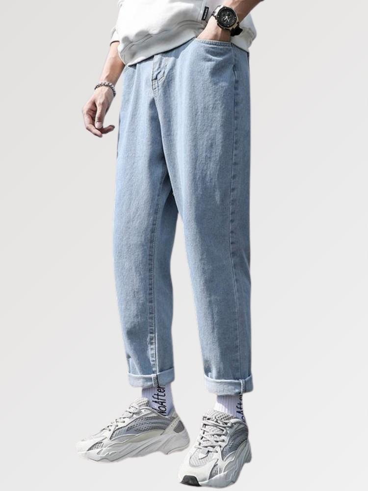 The Streetwear Jeans Mens with a straight slim cut is a perfect piece for a casual look in the image of Japanese fashion, ideal for a mid-season style