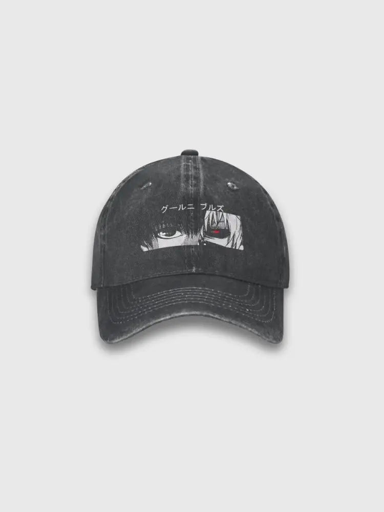 Discover our Tokyo Ghoul cap, inspired by the famous manga and animated. Perfect for Ken Kaneki fans and the dark universe of the series, this cap combines style and comfort. Display your passion for Tokyo Ghoul with this top quality cap.