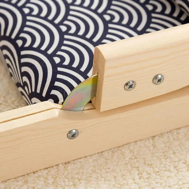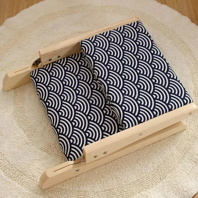 Crafted using traditional methods, our Japanese zaisu features a fabric adorned with wavy patterns evoking waves, symbols of good fortune and power in Japanese culture. Its durable, light-colored wooden frame adds a natural, soothing note to your décor, while providing reliable, comfortable support. The portability and easy storage of our Japanese zaisu make it a perfect solution for small spaces or multifunctional rooms, transforming every nook and cranny of your home into a true haven of peace.